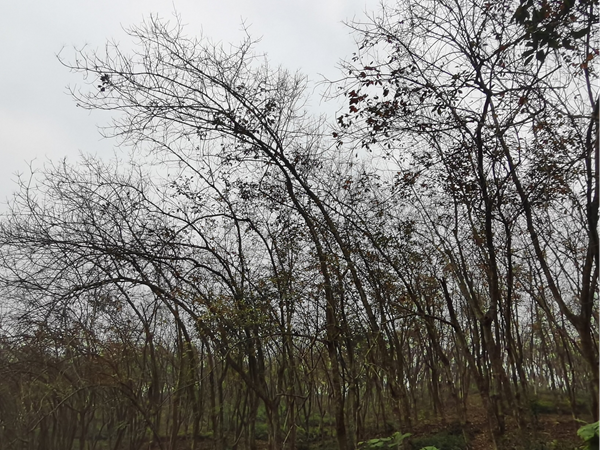 據(jù)片區(qū)各監(jiān)測站、點2月9日的監(jiān)測數(shù)據(jù)顯示:德宏州瑞麗農(nóng)場、芒市遮放農(nóng)場、盈江農(nóng)場落葉徹底,大部分植株落葉95%以上;德宏熱作所試驗區(qū)橡膠樹落葉80%~90%,物候較早的品種已開始萌動,個別植株進入小古銅期,出現(xiàn)邊抽葉邊落葉現(xiàn)象。臨滄市耿馬八業(yè)橡膠有限責(zé)任公司橡膠樹落葉不整齊,尚有45%的植株落葉不到80%;勐撒農(nóng)場、滄源華健監(jiān)測點落葉徹底,大部分植株落葉95%以上,多數(shù)橡膠樹還未開始抽芽。