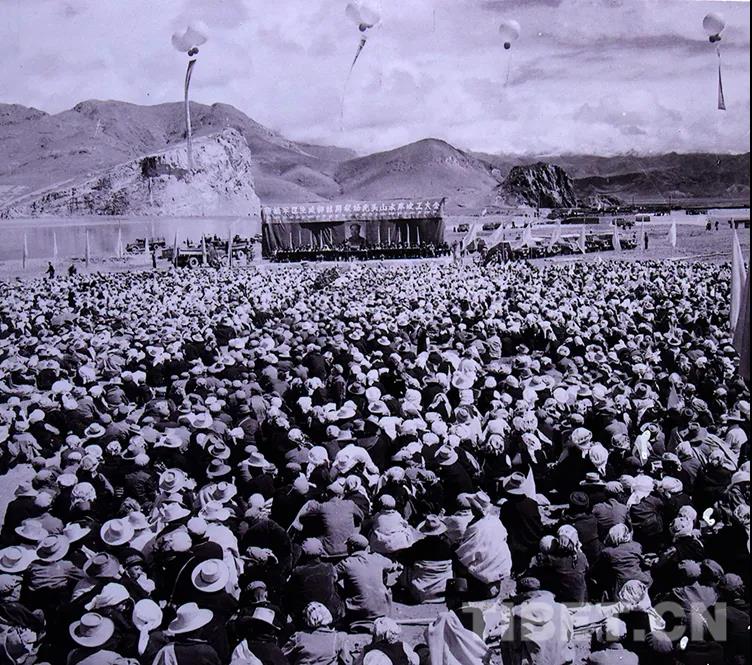 圖為林周農(nóng)場虎頭山水庫竣工大會(huì) 翻拍:王媛媛