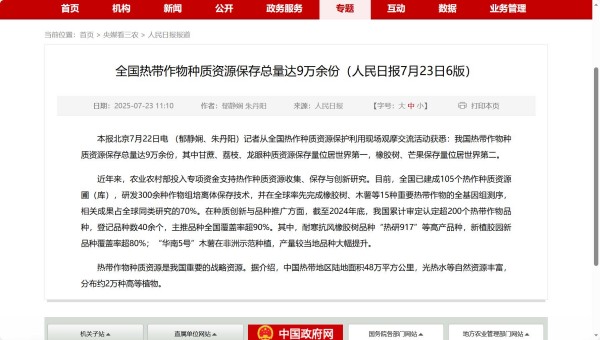 農(nóng)墾中心與海南省農(nóng)墾投資控股集團共同主辦2025年中國國際熱作產(chǎn)業(yè)大會,人民日報、新華社、農(nóng)民日報等媒體宣傳報道。