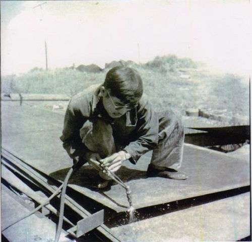 元旦過(guò)后,在沒(méi)有任何造船專業(yè)機(jī)械設(shè)備的情況下,大家用雙肩把第一塊鋼板抬上了船臺(tái),接著兩塊、三塊、五塊、十塊,每塊鋼板都是1.4米×6米……