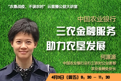首場(chǎng)直播內(nèi)容:中國(guó)農(nóng)業(yè)銀行總行三農(nóng)對(duì)公業(yè)務(wù)部農(nóng)業(yè)金融處處長(zhǎng)何源源介紹農(nóng)行“三農(nóng)”金融服務(wù)的主要情況,展望金融服務(wù)農(nóng)墾改革與發(fā)展的前景。