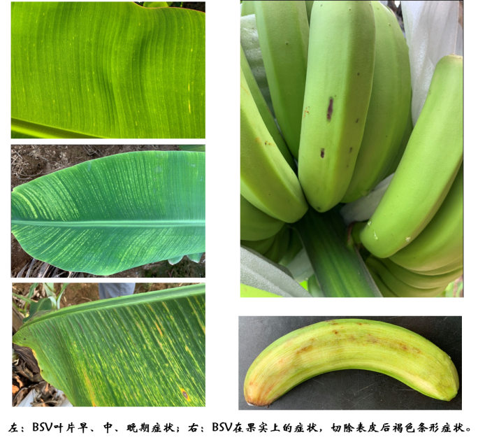 香蕉條斑病毒?。˙anana streak virus, BSV)又名香蕉線條病毒病,嚴重危及哥倫比亞、烏干達、哥斯達黎加、澳大利亞、南非、印度、巴西、菲律賓等國家香蕉產(chǎn)業(yè),可致每公頃損失4.5—30 噸產(chǎn)量。過去,香蕉條斑病在我國也有發(fā)生,但是對生產(chǎn)尚未造成嚴重危害。