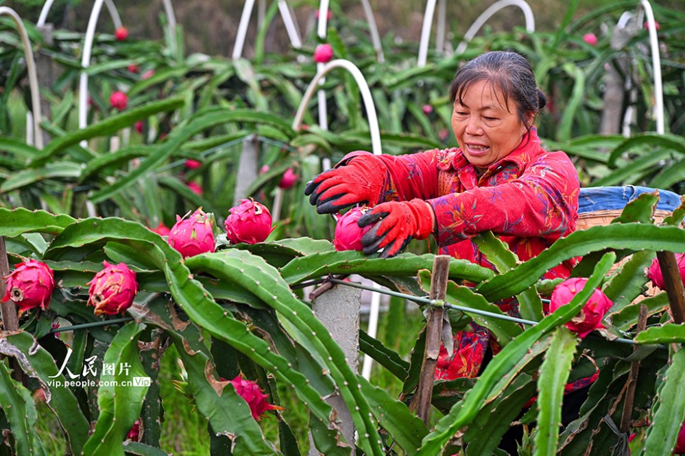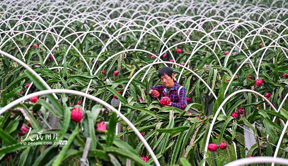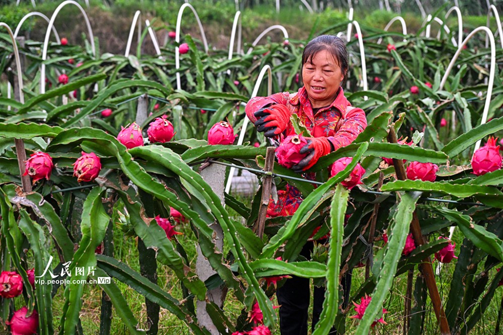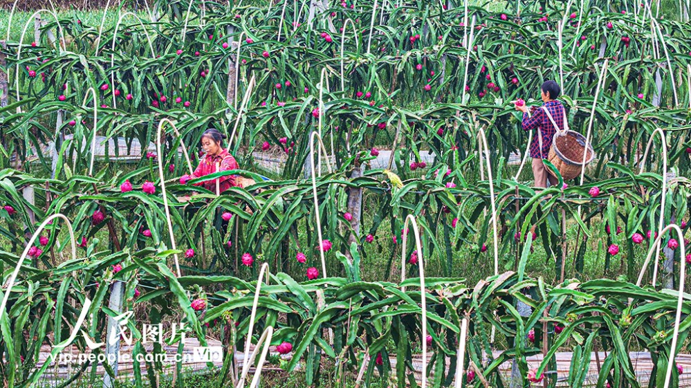 近年來,當?shù)匾虻刂埔艘?guī)?;l(fā)展火龍果、櫻桃等特色水果產(chǎn)業(yè),助力土地增效,村民增收。潘帥攝(人民圖片網(wǎng))