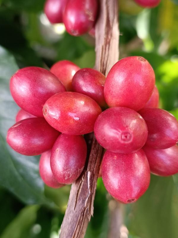 “德熱4號”系云南省德宏熱帶農(nóng)業(yè)科學研究所從葡萄牙熱帶研究所(IICT)咖啡銹病研究中心(CIFC)引進育種材料SL1-Sarchimor選育而成,完成了品種比較試驗、區(qū)域性試驗和生產(chǎn)性試驗?!暗聼?號”具有抗銹病、品質優(yōu)良、豐產(chǎn)穩(wěn)產(chǎn)、生勢強、商品豆粒度大等優(yōu)點,經(jīng)現(xiàn)場測產(chǎn),芒市試驗點平均單株鮮果重6.86kg,按畝植333株折合,畝產(chǎn)鮮果2284.38kg,保山試驗點平均單株鮮果重5.84kg,按畝植333株折合,畝產(chǎn)鮮果1944.72kg?!暗聼?號”適宜在我國云南德宏、保山、臨滄、普洱等小??Х纫酥矃^(qū)種植。