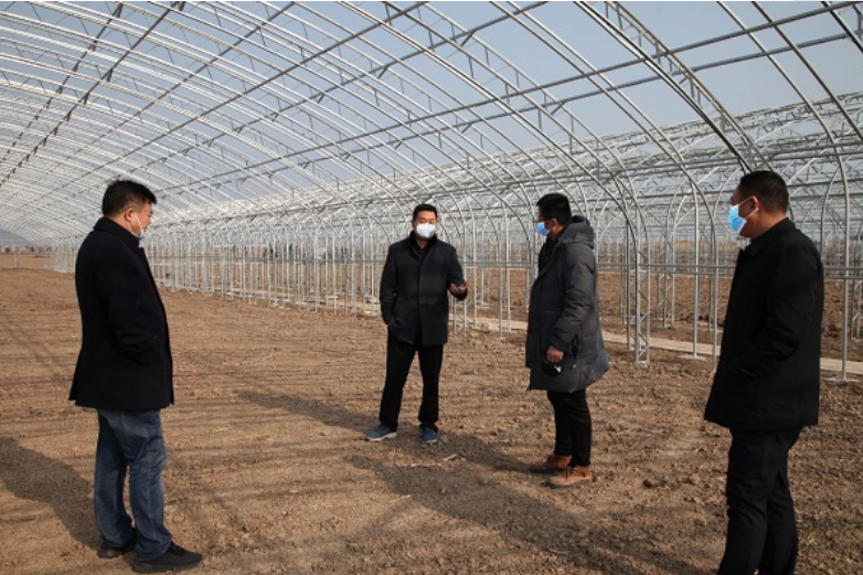 圖為云臺(tái)農(nóng)場(chǎng)公司主要負(fù)責(zé)人現(xiàn)場(chǎng)檢查疫情防控期間企業(yè)復(fù)工情況