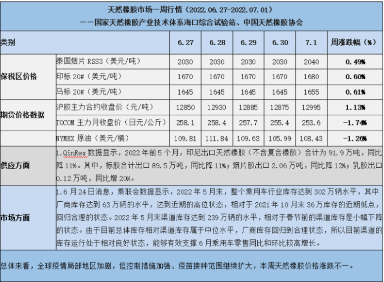 天然橡膠、大豆、玉米市場一周行情(2022.06.27-07.01)